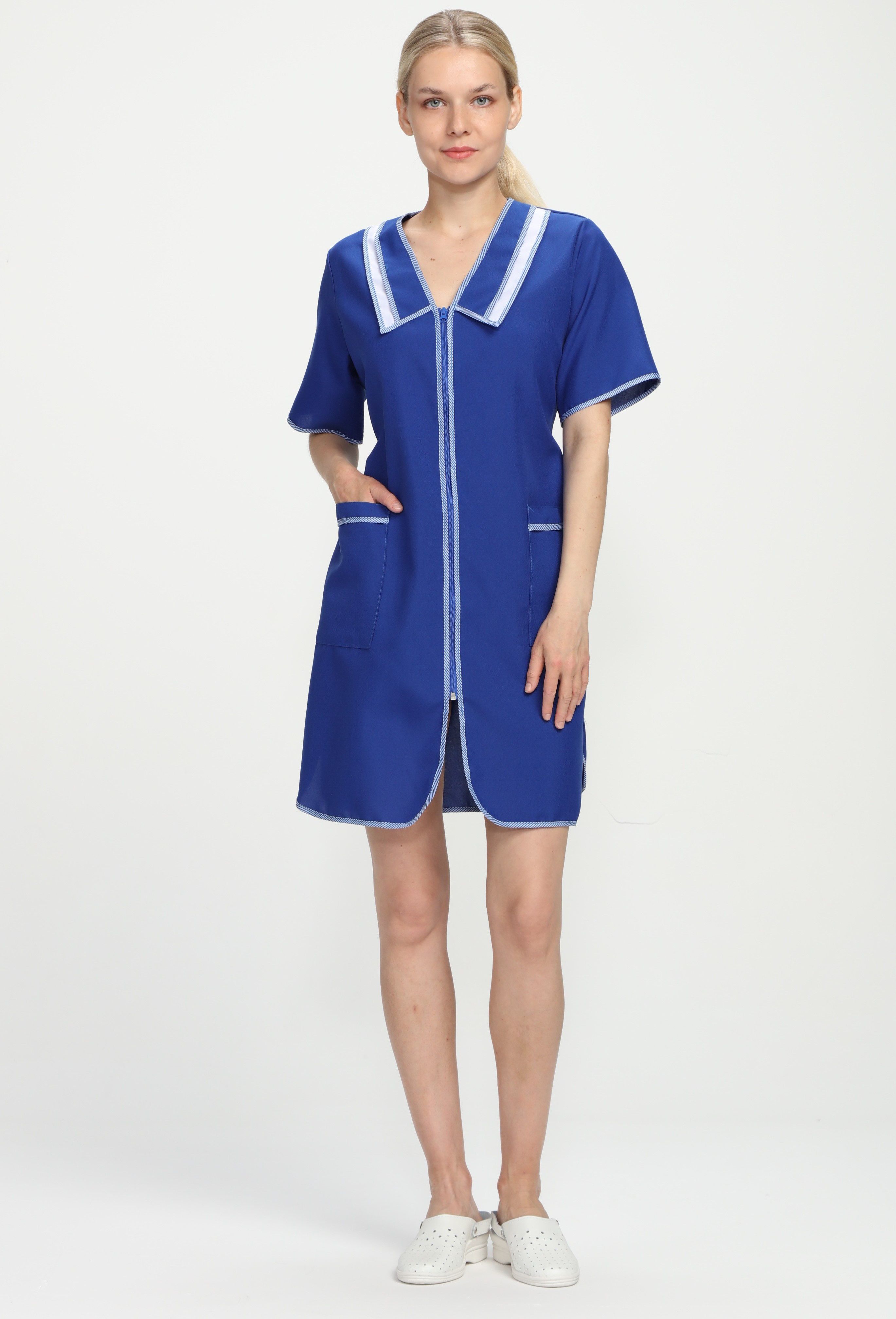 Халат женский на молнии "Нейла" василек, тк. Нейлон, кор. рук.